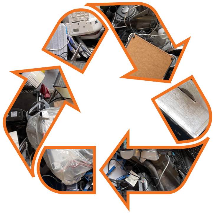 DataRut källsorterar överblivet emballage och lämnar uttjänt elektronik till återvinning.