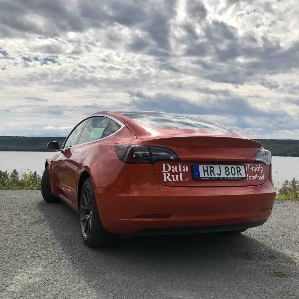 Alla kundbesök sker med god planering och med elbilar från Tesla. Bilen laddas med 100% förnybar energi från Jämtkraft.
